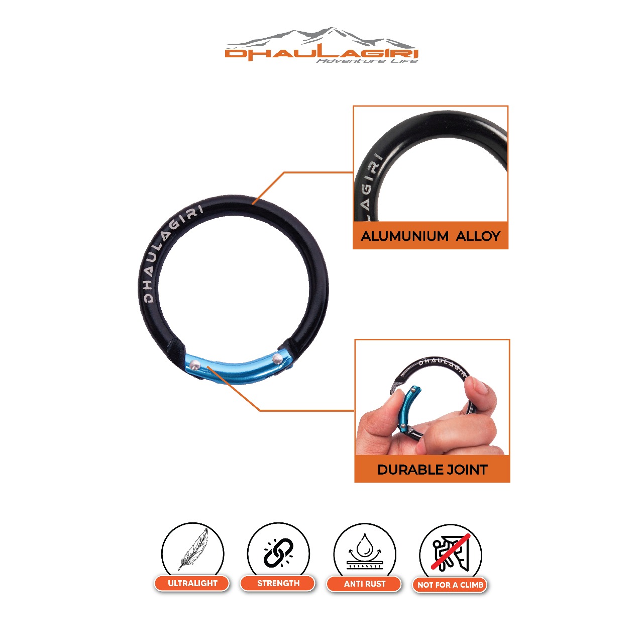 Dhaulagiri Carabiner Round Type 5 CM/ Carabiner Multifungsi Untuk Gantungan Tas dan Accesories