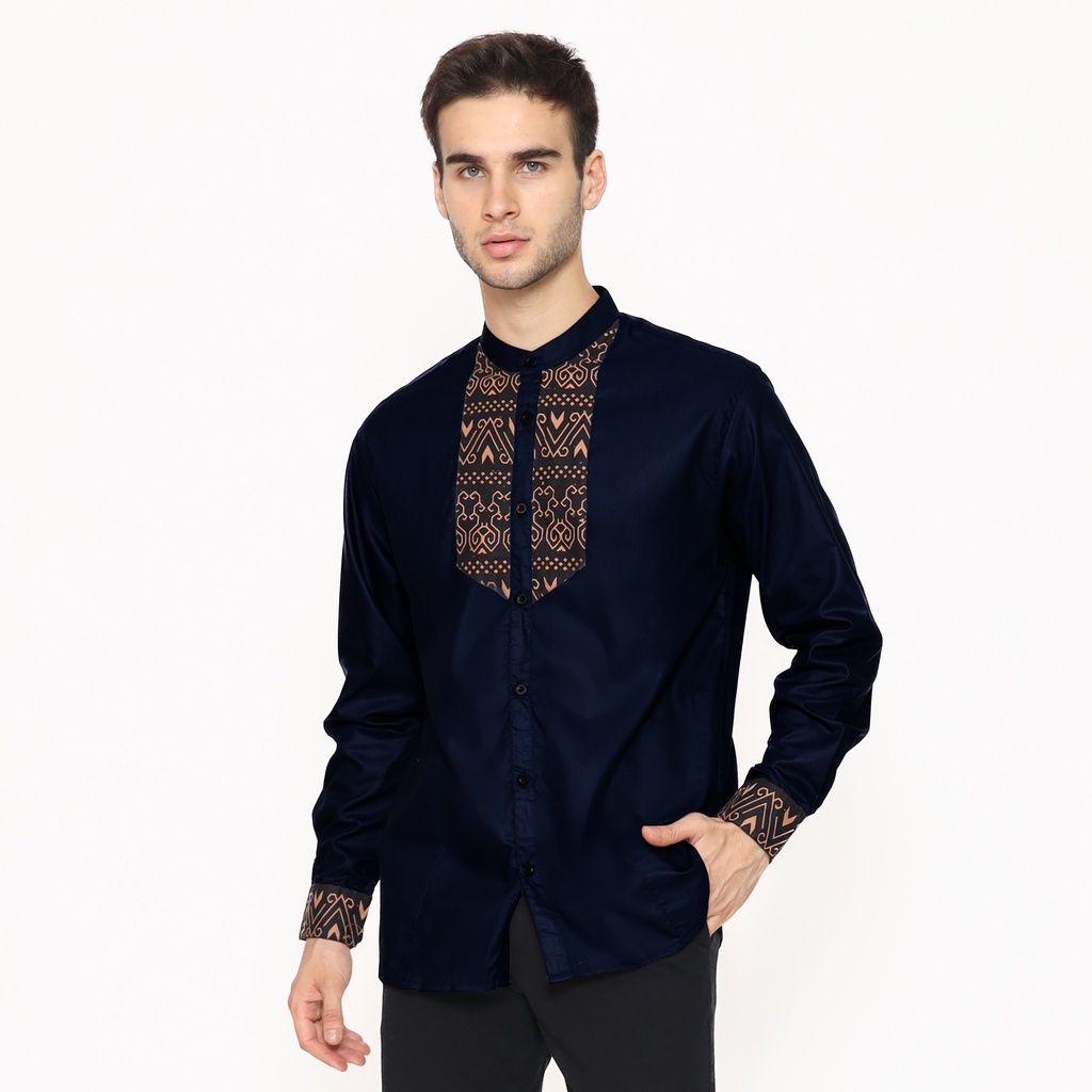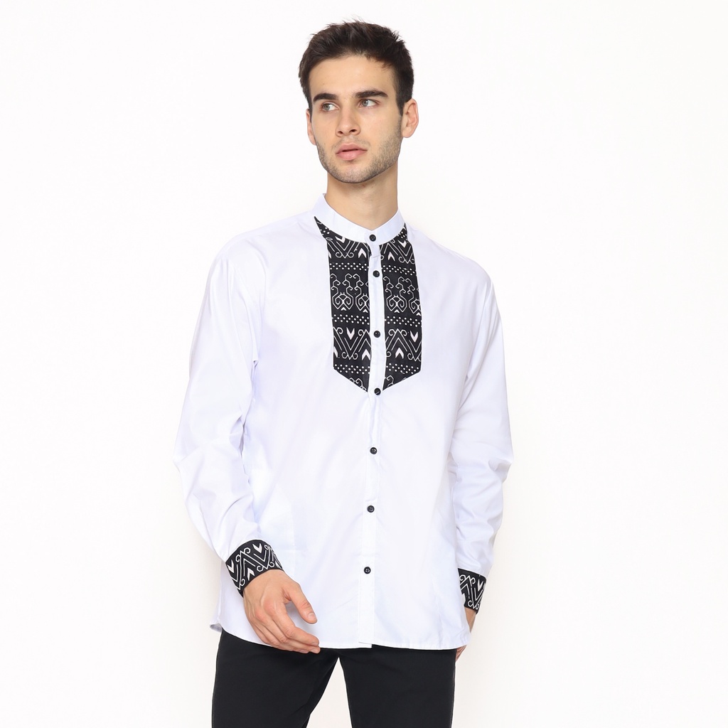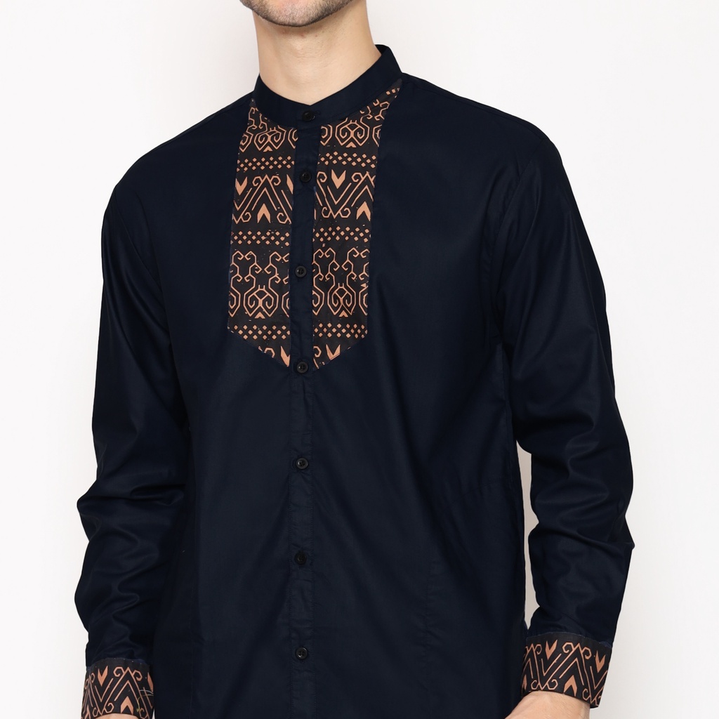 ALAWI - Baju Koko Pria Muslim Lengan Panjang Motif Busur Hitam Kombinasi Hadroh Azzahir M L XL