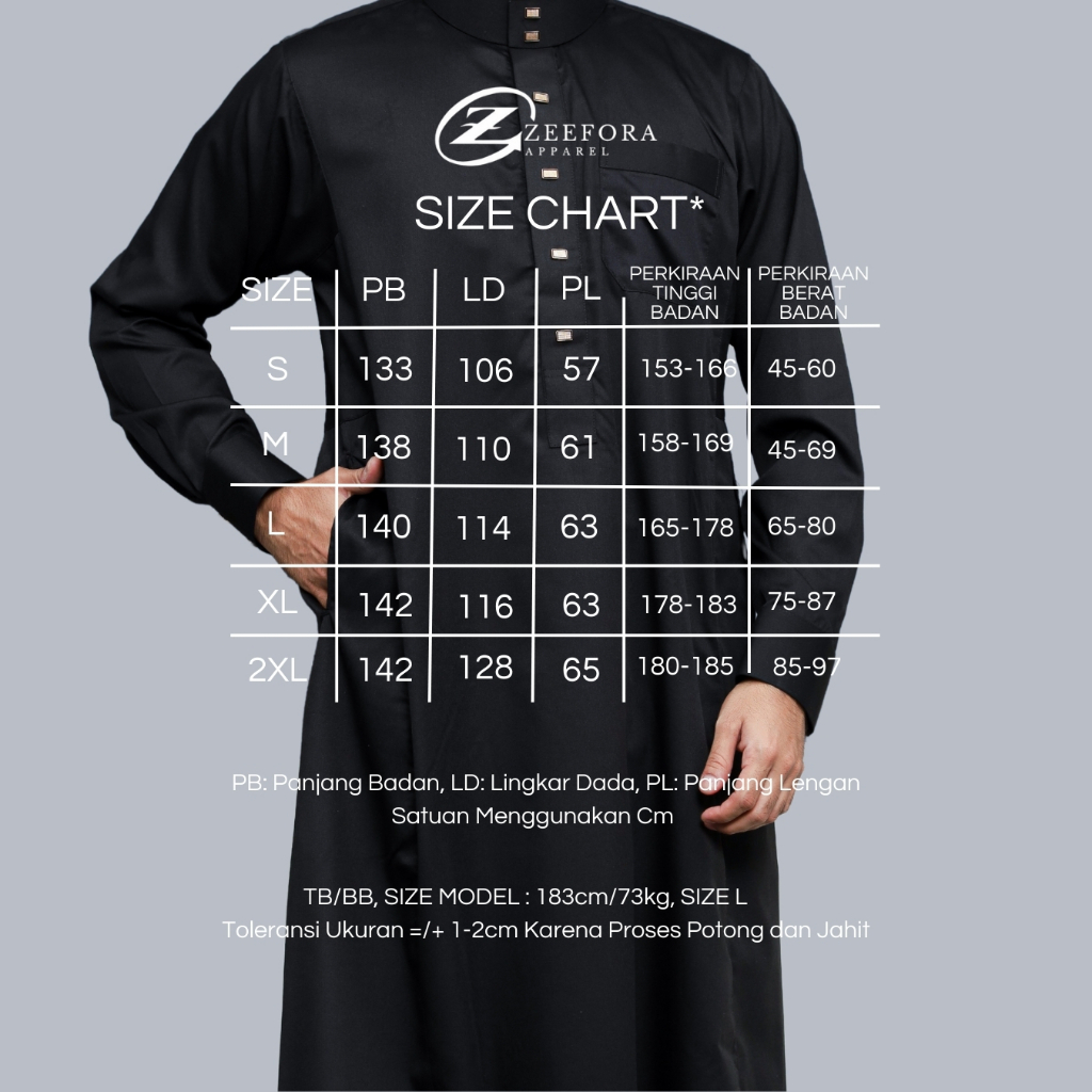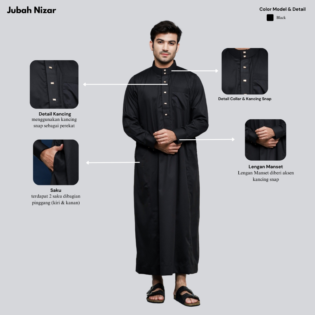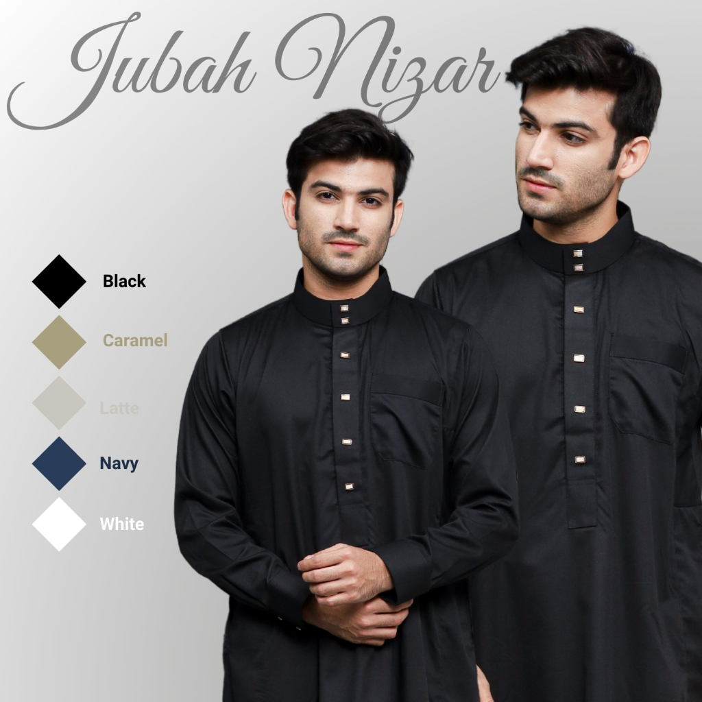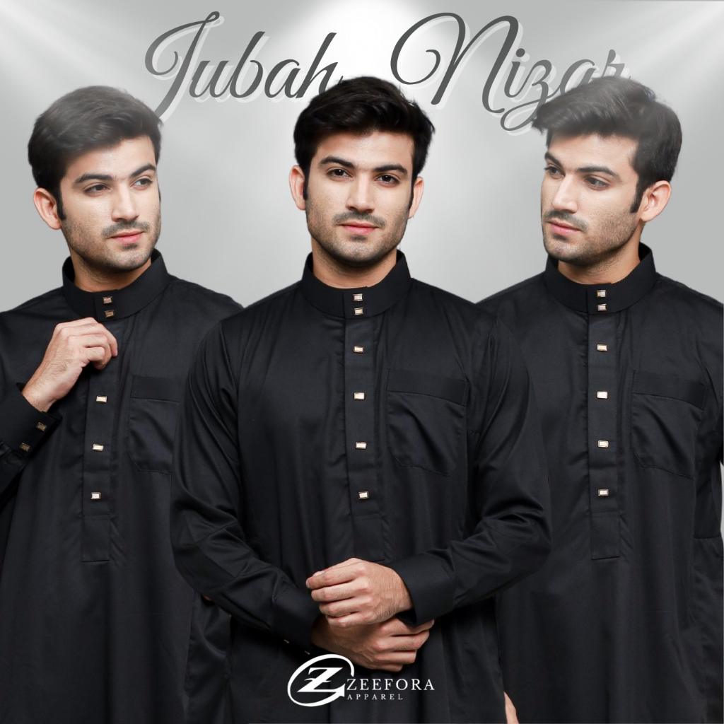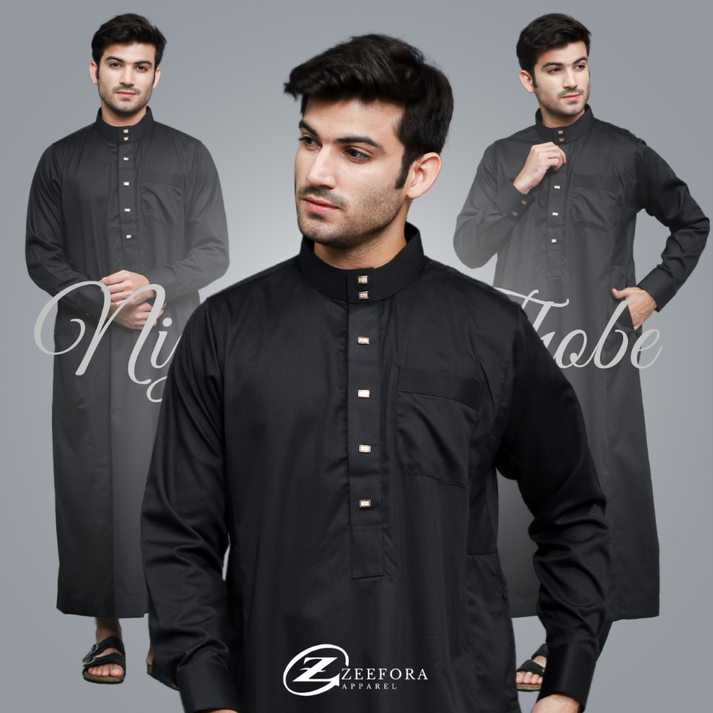 Zeefora Gamis Nizar Jubah Saudi Basic Thobe Pria Dewasa Kancing Snap Lengan Panjang Berkualitas