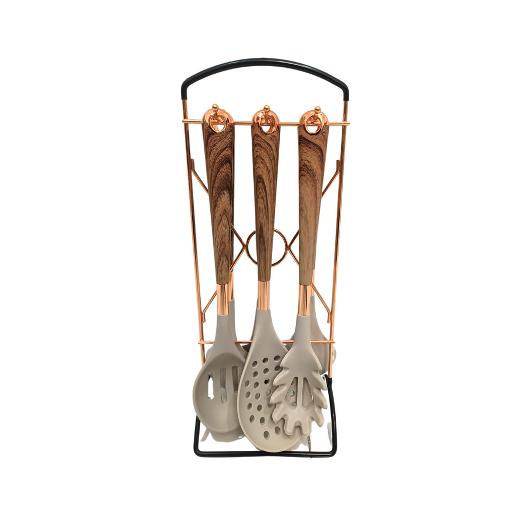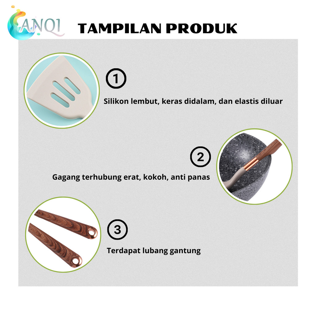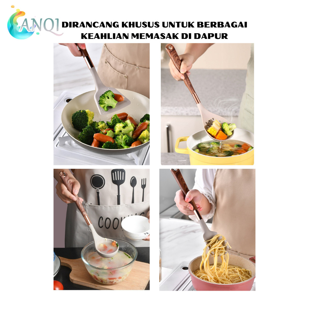 ANQI SHOP Spatula Silikon Brown Set 7IN1 Premium Mewah Kado Nikah Hampers Souvenir / Kitchen Silicon Utensile Set Aesthe