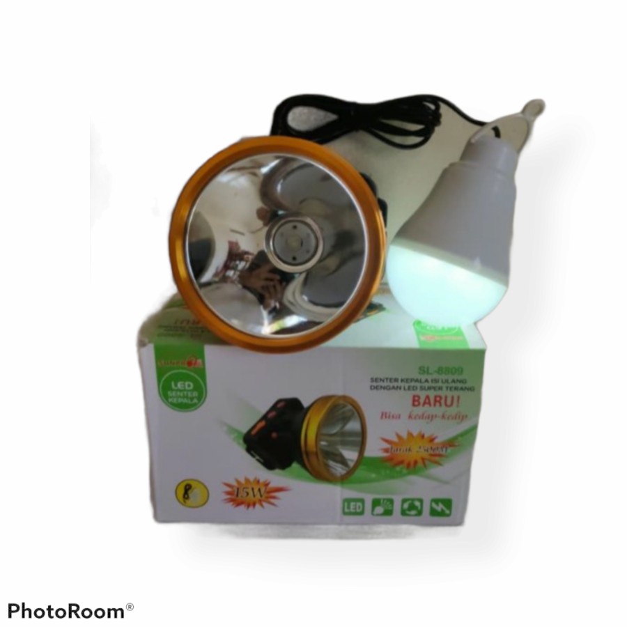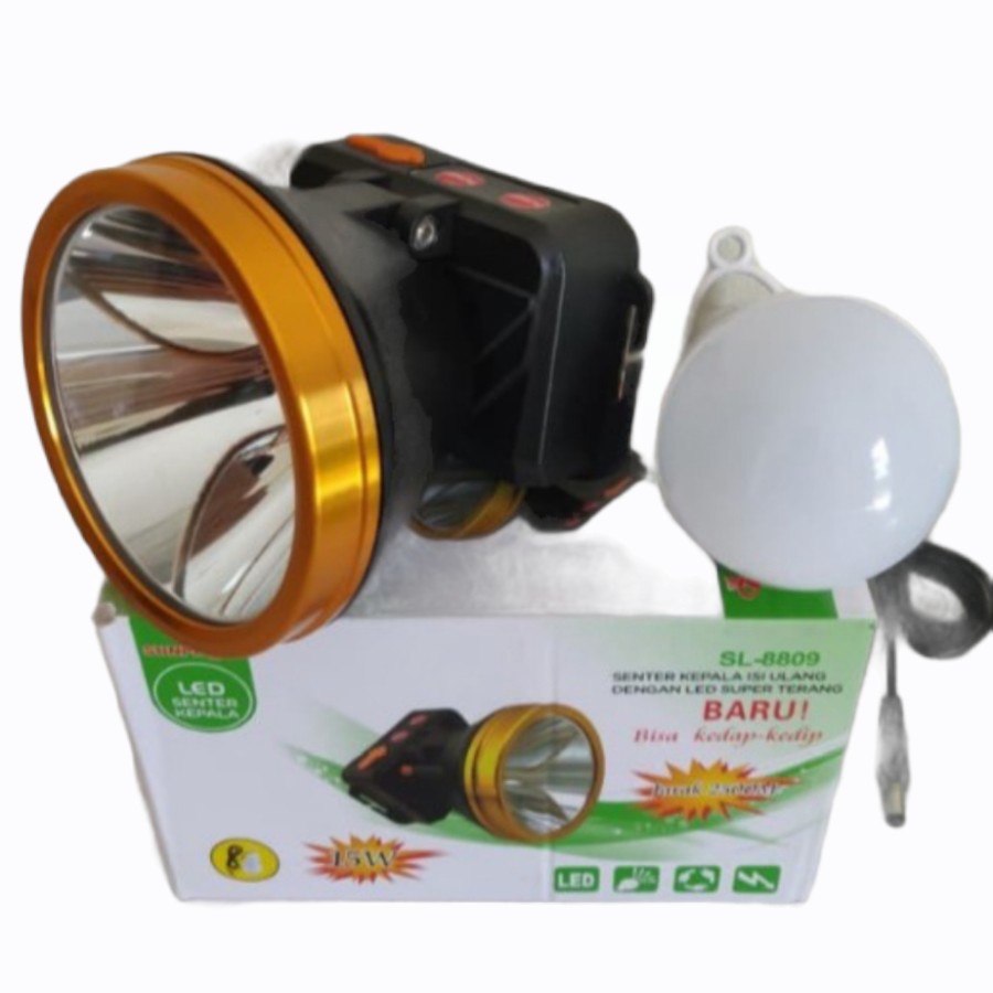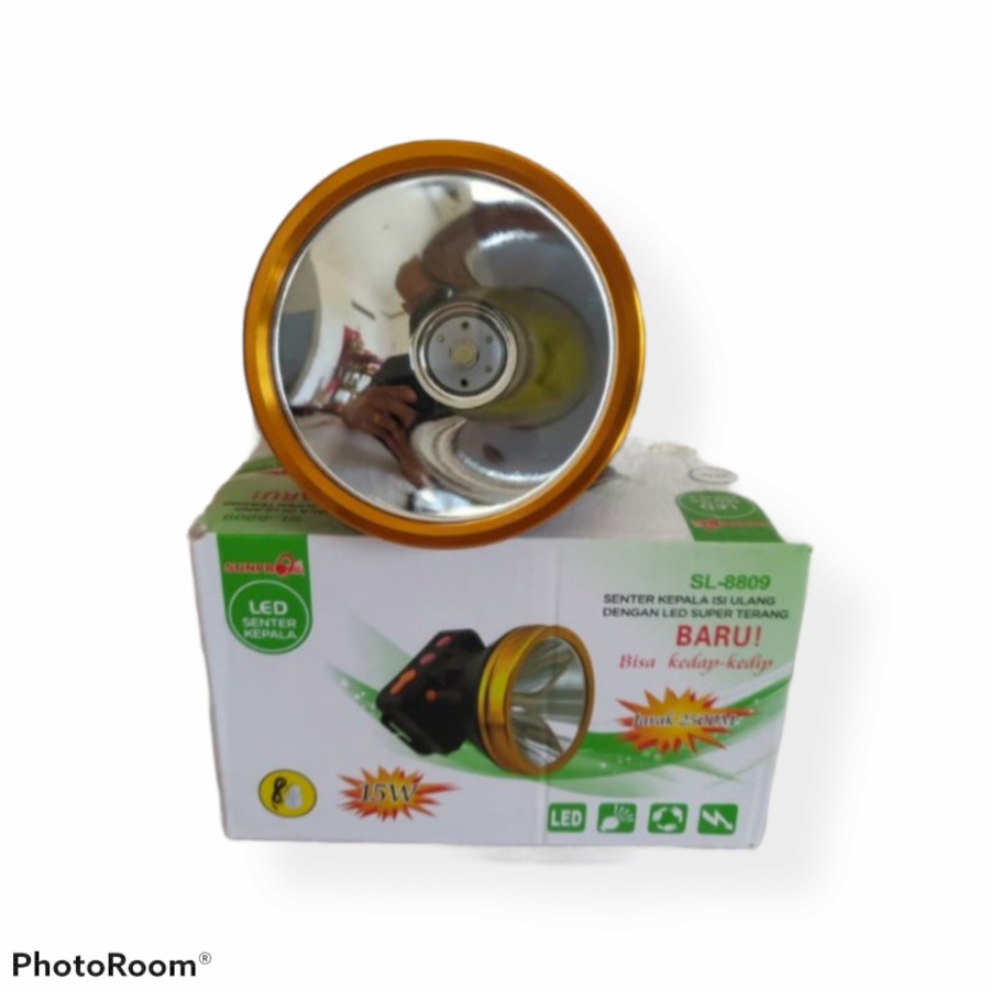 Senter Kepala Led 15 Watt Sunpro Sl-8809 Headlamp Led Charger Cahaya Putih