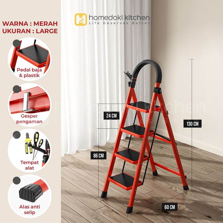Tangga Besi Lipat 3/4 Step Household Steel Ladder Homedoki Kitchen -