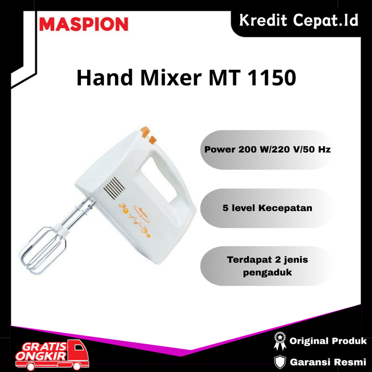 Hand Mixer Maspion MT 1150 2 Jenis Pengaduk dan 5 Level Kecepatan Putaran Garansi Resmi - Kredit Cepat.Id