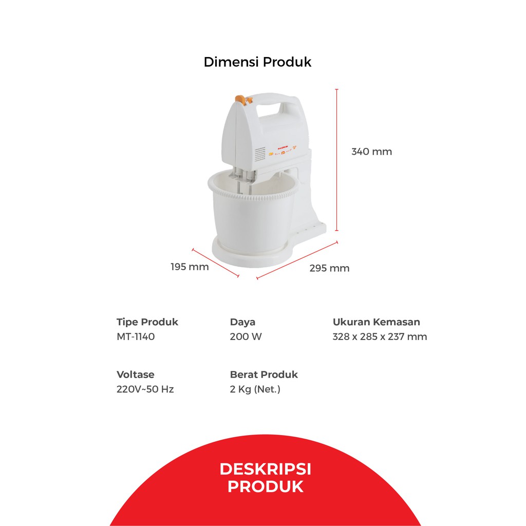 Mixer Com Maspion MT 1140 Terdapat 5 Level Kecepatan Mengaduk Garansi Resmi - Kredit Cepat.Id