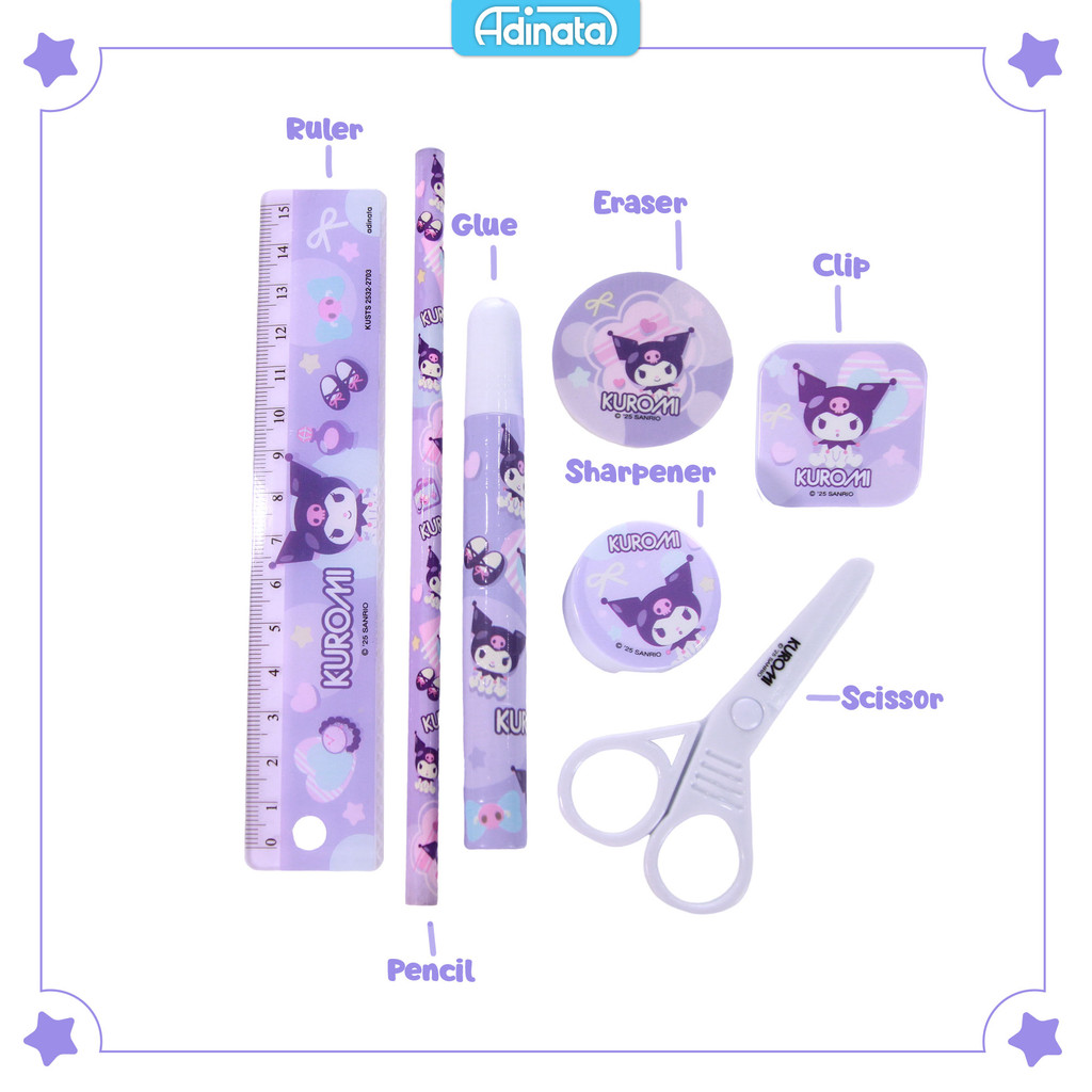 Kuromi stationery set 7 pcs 2532-2703 / paket alat tulis / alat tulis karakter - Adinata
