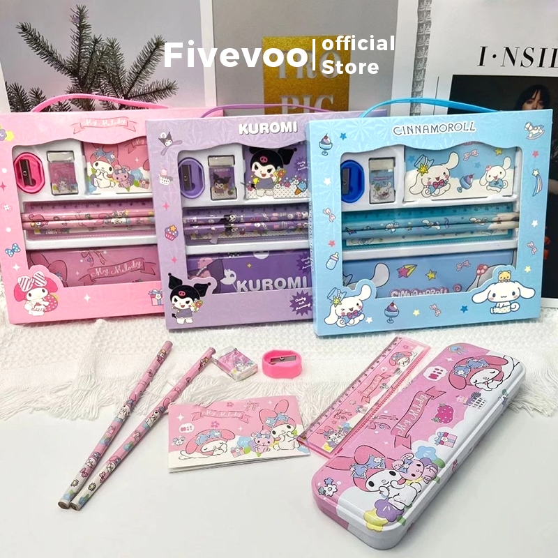 FIVEVOO Alat Tulis Anak Tk / Kotak Pensil Anak Set / Tempat Pensil Anak Perempuan Sanrio / Kotak Pensil Kuromi Squi