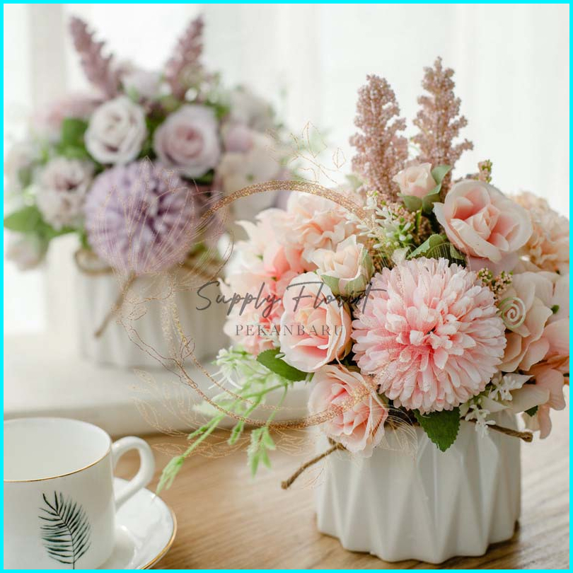 Supplyflorist - Vas Bunga Pom Mix Mawar Lavender Artificial