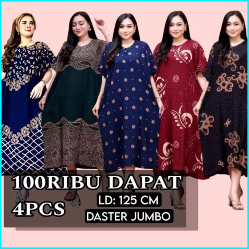 100 Dapat 4pcs Daster Rayon Jumbo Busui Bumil Kancing Depan Nyaman Dipakai Motif Cantik Ld 120 Lengan Pendek