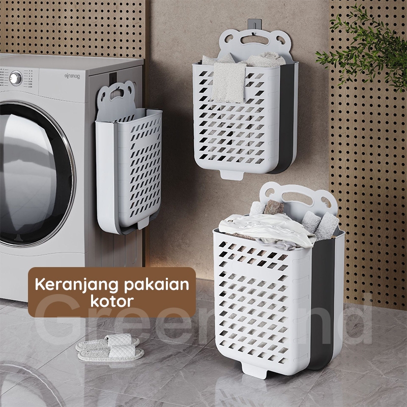 Greenland Tahan Lama Keranjang Baju Kotor Keranjang Laundry Multifungsi Lipat Anti Lembab Basket Gantung Plastik Elastis