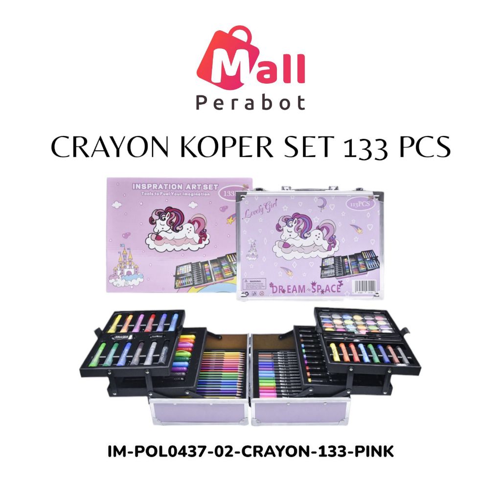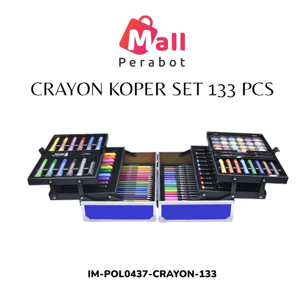 Mall Perabot | Crayon Set 133 Pcs Koper Aluminium Besi | Box Alat Lukis Anak Koper Set | Krayon Mewarnai Anak | Pensil