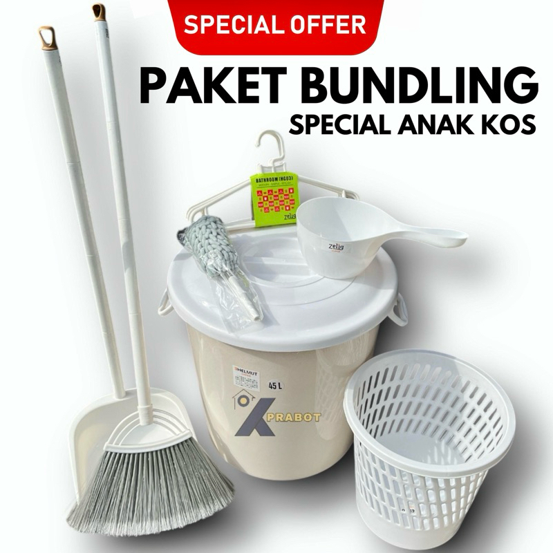 [PROMO BUNDLING KOMPLIT] Spesial Anak Kos - Ember Jumbo 45L + Sapu Pengki + Gayung Mandi + Tempat Sampah + Hanger + Kemo