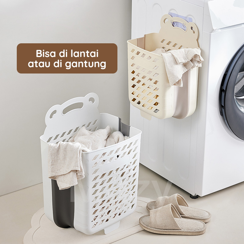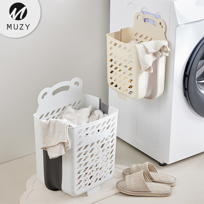 Muzy Laundry Basket Gantung Plastik Tempat Penyimpanan Keranjang Baju Kotor Lipat Hanging HSB808
