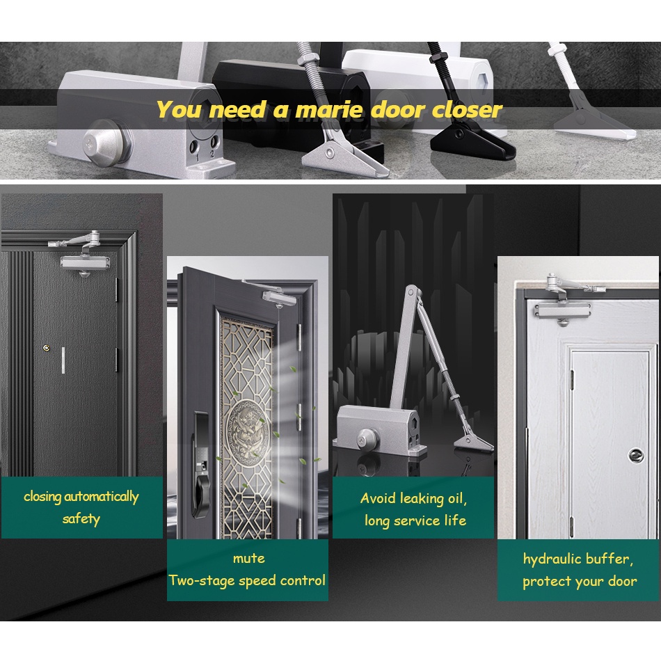 Door Closer Penutup Pintu Otomatis 180°35Kg Door Closer Tahanan Pintu Kunci Pintu Penutup