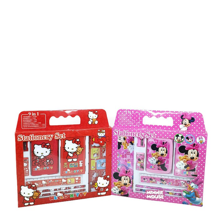 Promo Paket Alat Tulis Sekolah Stationery Set 9 in 1/Hello Kitty/Minnie Mouse
