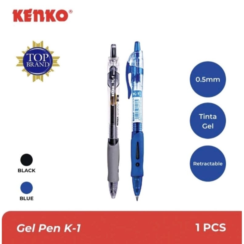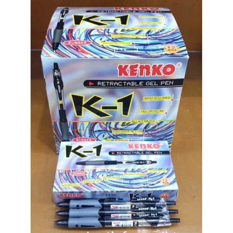 Pulpen Pen Bolpoint Pena Gel KENKO K1 0,5 Hitam (1 Pak 12 pcs)