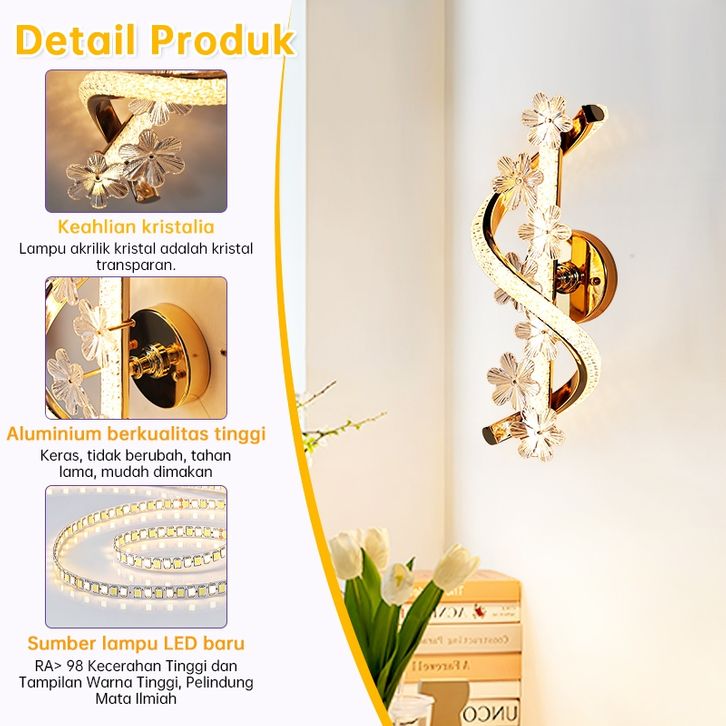 LAMPU DINDING KAMAR TIDUR RUANG TAMU MINIMALIS AESTHETIC HIAS KRISTAL TEMPEL LAMPU DINDING HIAS MEWAH KEKINIAN