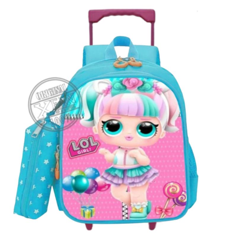 Tas troli anak perempuan - tas dorong motif LOL girl - tas sekolah anak Sd Tk - tas roda anak lol tas dorong motif kartun