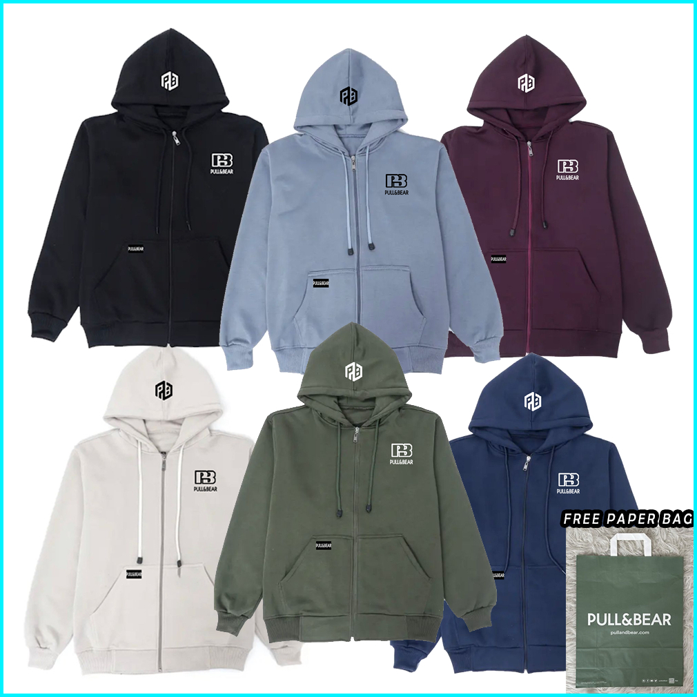 Free Paper Bag Hoodie Zipper Pull And Bear Basic Pria - Wanita Oversize Premium Quality F2