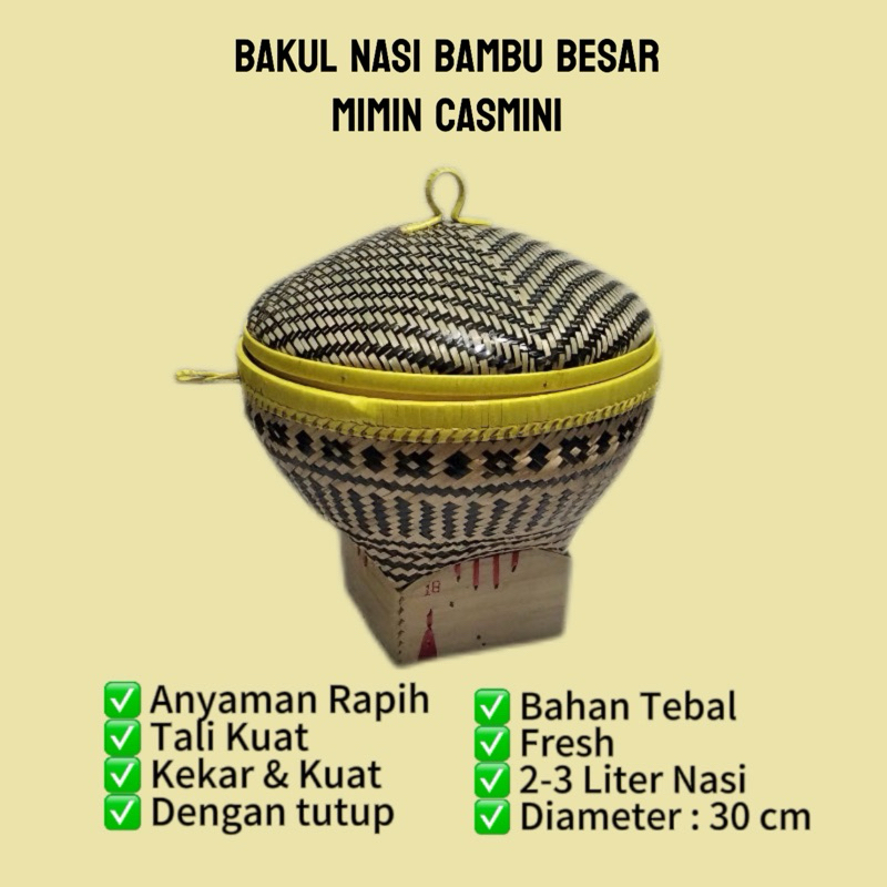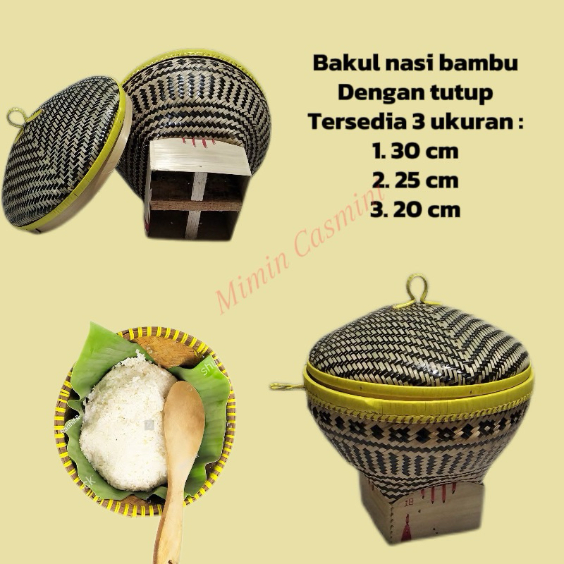 BAKUL NASI BAMBU DENGAN TUTUP TERSEDIA 3 UKURAN 20 CM, 25 CM DAN 30 CM