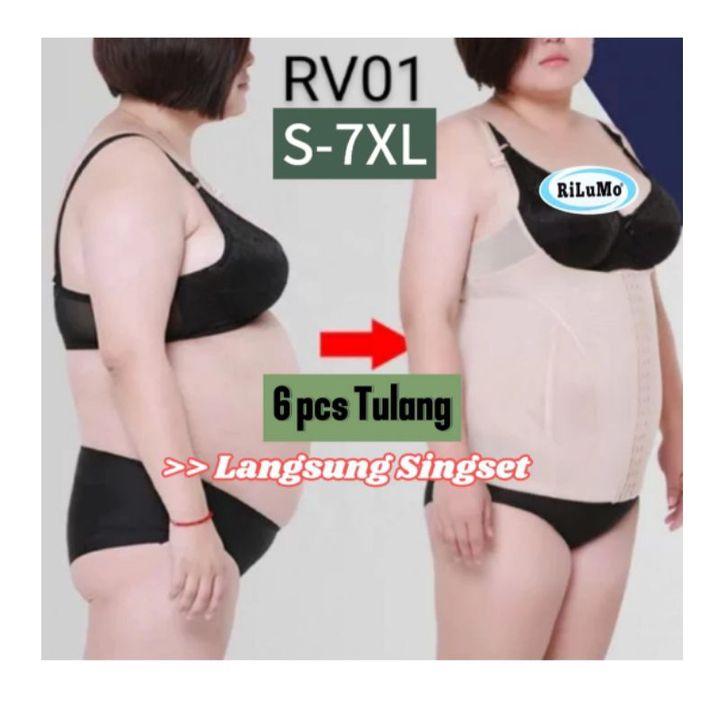 Korset Lilit RiLuMo Korset Kebaya Vest 6 TULANG Premium S - 7XL Corset Punggung Jumbo Big Size 6 Hooks 3Kait