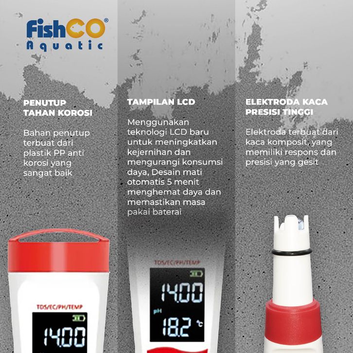 Fishco Alat Ukur Kualitas Air Water Test 4 in 1 TDS, pH, Ec, Temp meter