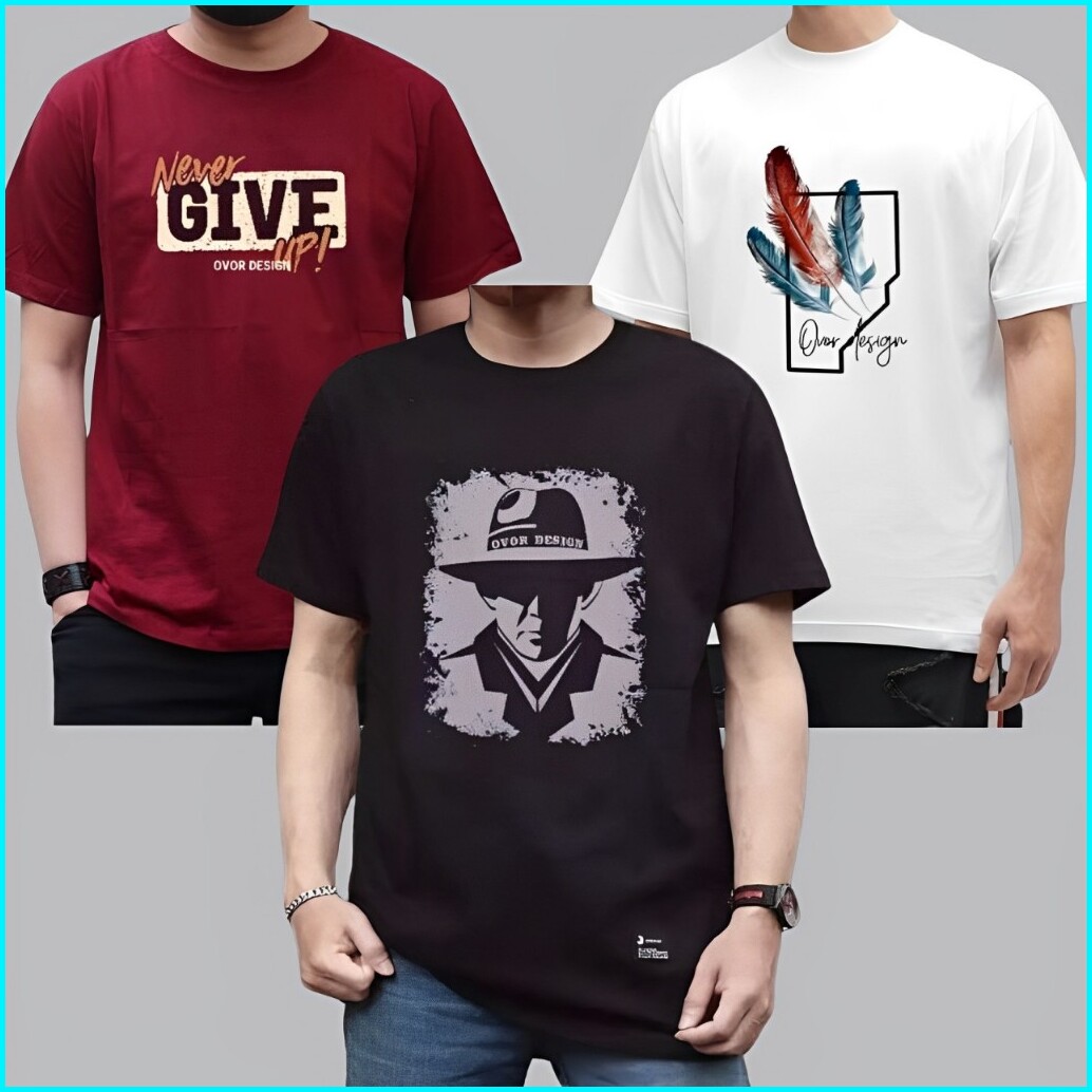 Isi 3pcs Kaos Distro Kaos Pria Lengan Pendek Kaos Pria Distro Kaos Oblong Bahan Katun