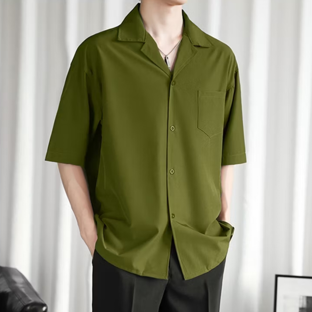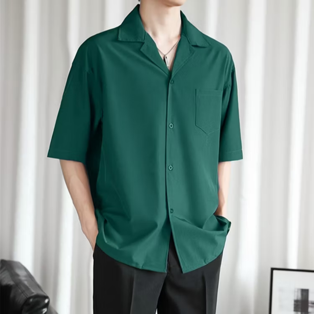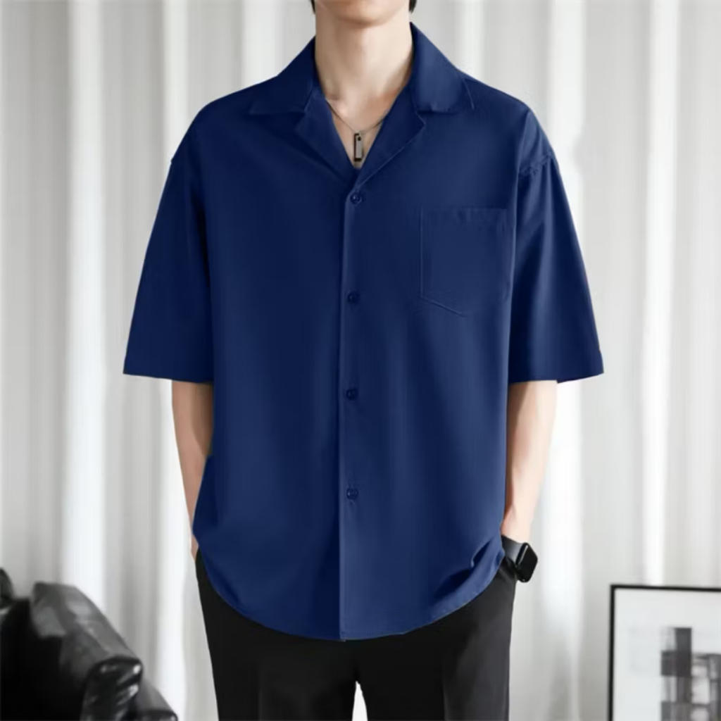 (Gratis Ongkir) Kemeja Vintage Katun Halus Import Lengan Pendek Polos Pria Casual Terbaru Viral Adem Lembut Jumbo