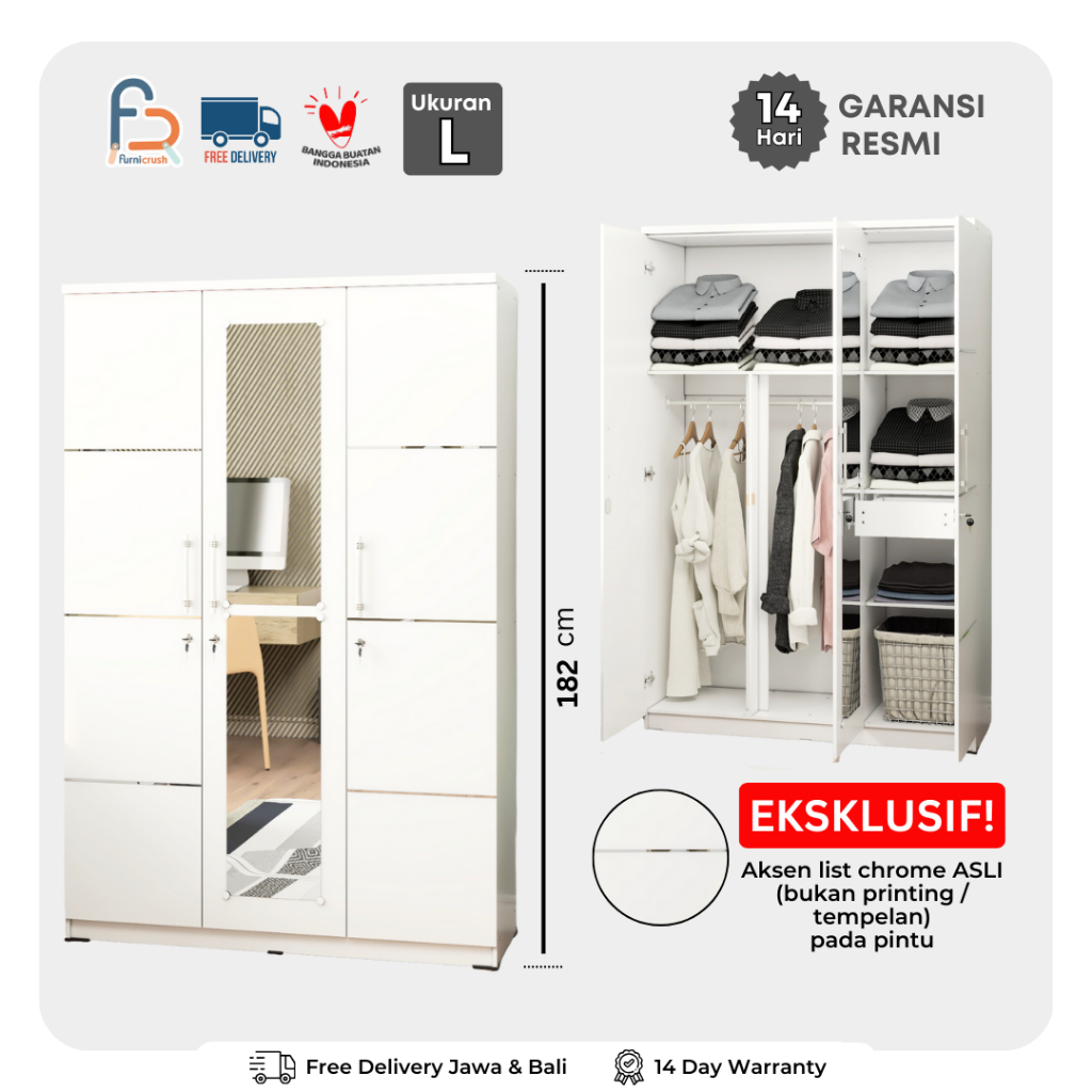Lemari Pakaian 3 Pintu Almari Pakaian Kayu Wardrobe Aesthetic Korea / Almari Baju / Rak Baju Gamis / CAMILLE WD 301