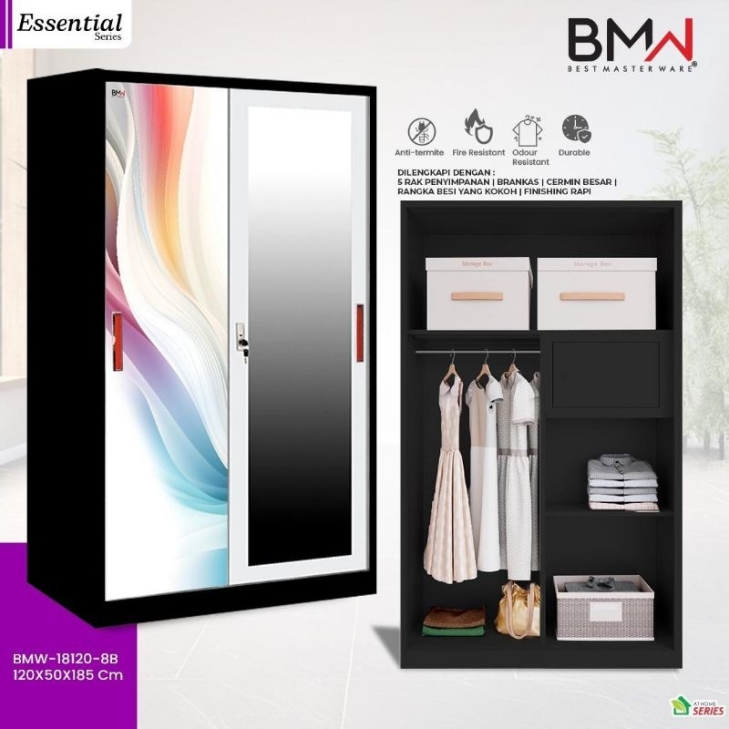 LEMARI PAKAIAN BESI SLIDING BMW 2 PINTU