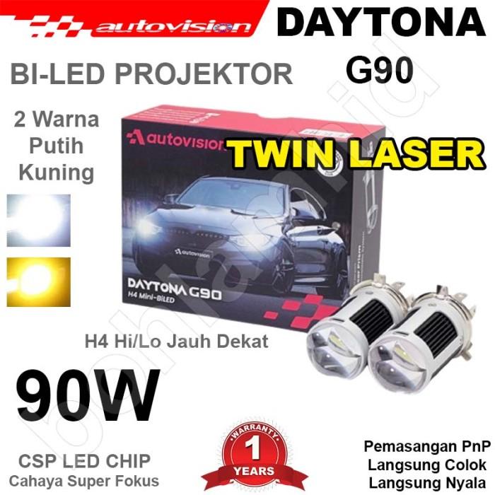 Led Mobil Bi Led 90W Projektor Twin Laser 2 Warna H4 Hi/Lo Autovision Daytona - 90 Watt, Putih Putih - 90 Watt, Putih Pu
