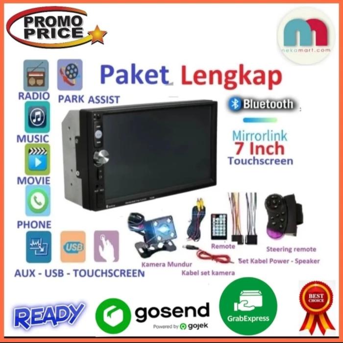 Paket Lengkap Tape Mobil Double Din 7 Inch Kamera Mundur Remote Setir - Tape Mobil Saja