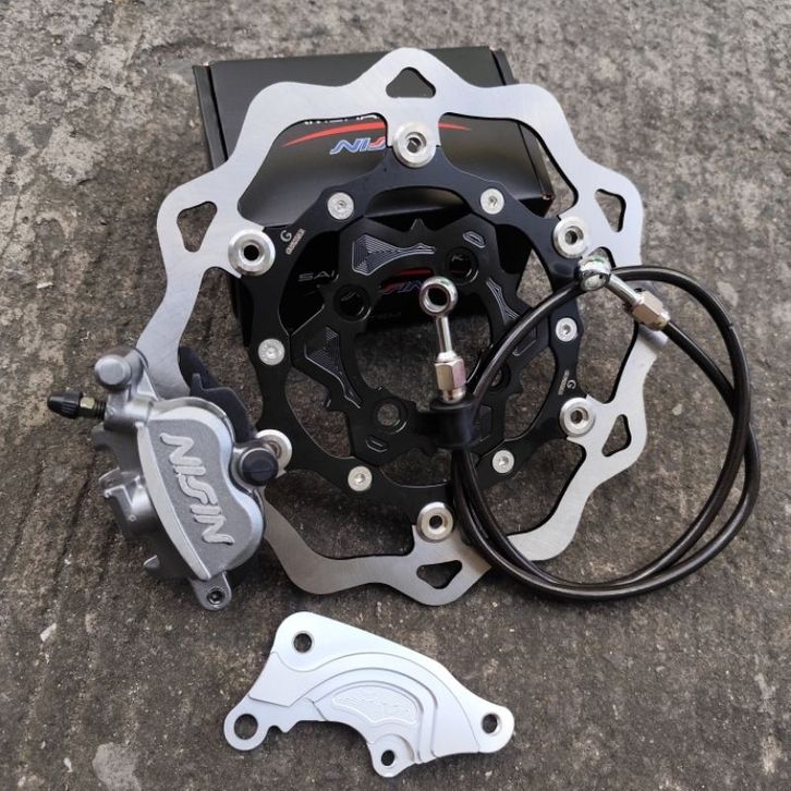 PAKET PIRINGAN DISC CAKRAM 260MM + KALIPER 2PISTON NI5ZIN /BR3M80 + SELANG REM TDR 35 inchi + BREKET 260MM MIO SMILE MI