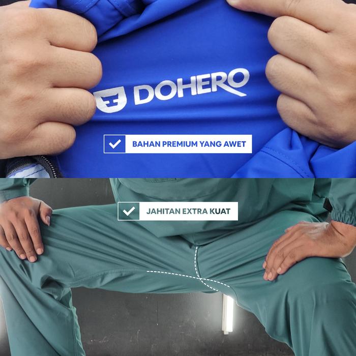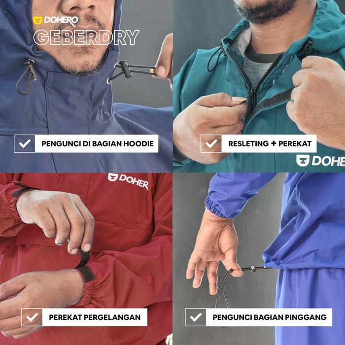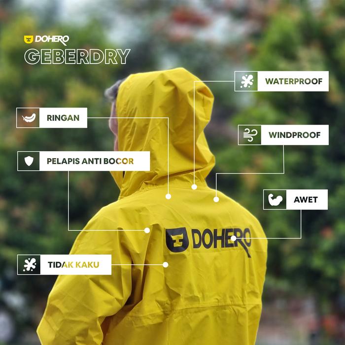 Dohero Geberdry Jas Hujan Pria Wanita Modis Mantel Raincoat Original Bahan Taslan Anti Rembes Waterproof - Hitam, Xxl
