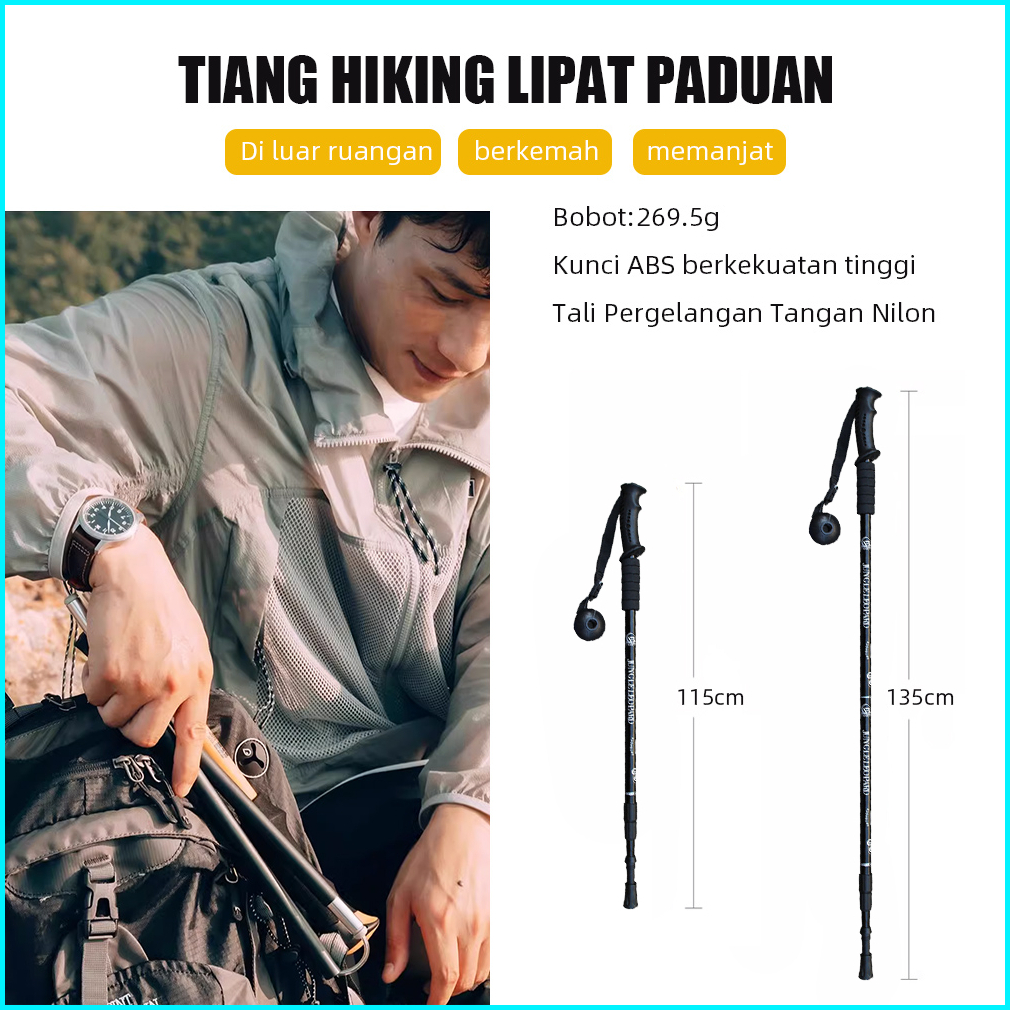 Matougui Tongkat Trekking Tongkat Trekking Paduan Aluminium Ultralight Teleskopik Anti Selip Peralatan Pendakian Gunung