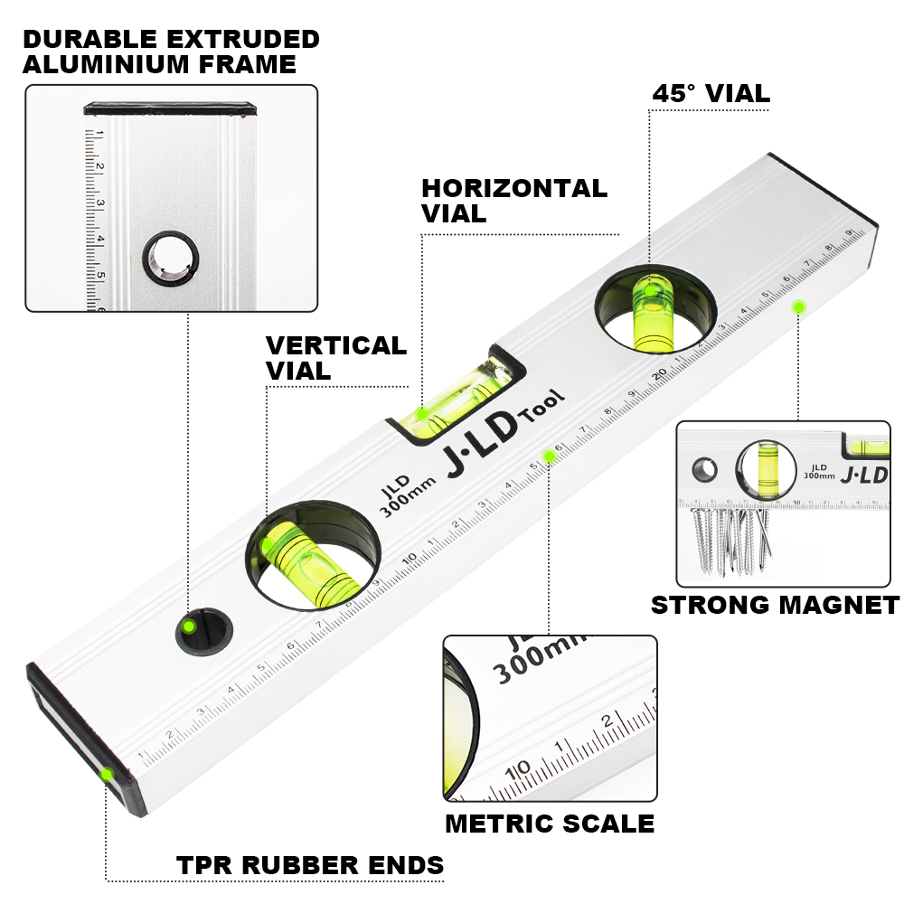JLD 12''-40" Spirit Level Waterpass Magnet Aluminium Akurat Perkakas Bisa horizontal-vertikal-diagonal 45°