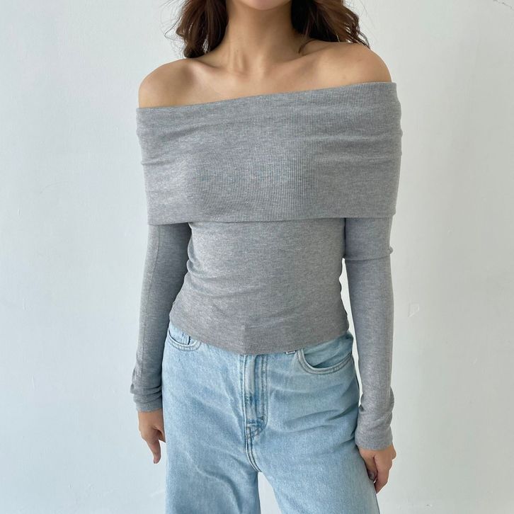 Atasan Wanita Kekinian Crop Korean Atasan Knit Lengan Panjang Basic Long Sleeve