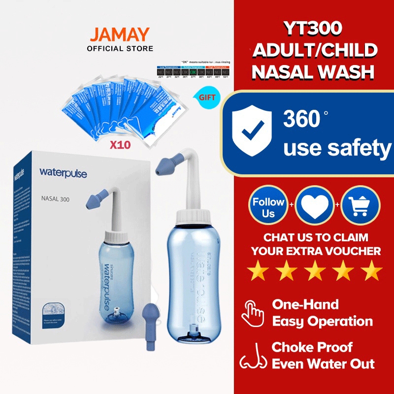 JAMAY Nasal Spray Neti Pot Waterpulse Nasal Irrigator Cleansing Spray Nasal Irrigator 300ml Rinse Nasal Cleanser YT300