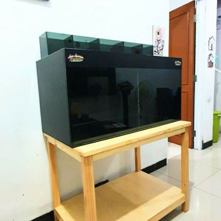 Aquarium Full Set Besar PAKET AQUARIUM 100X50X50 FULL 8MM FULL LEM HITAM FULL BEGROUND HITAM DAN TOP FILTER KACA HITAM