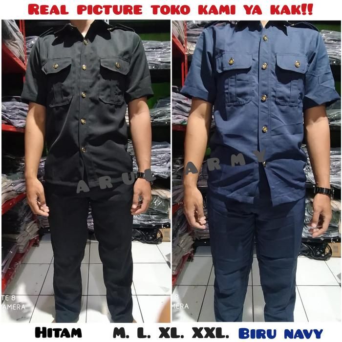Seragam Security baju seragam safari security satpam pendek murah berkualitas bandung - Biru navy XXL