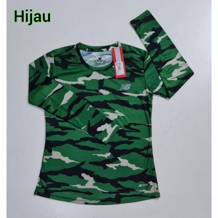 Baju Olahraga Wanita Baju Senam Wanita Motif Loreng Army Kaos Olahraga Lengan Panjang Cewek - Hijau L