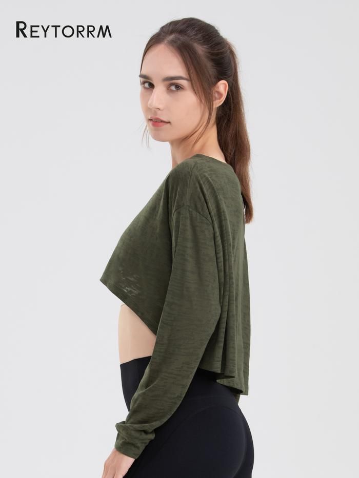 Baju Olahraga Wanita Reytorrm Wanita olahraga Yoga Wear pendek long sleeve T-Shirt sports - Hijau XL:60-70kg