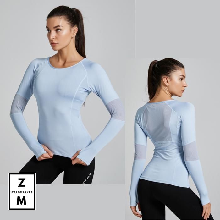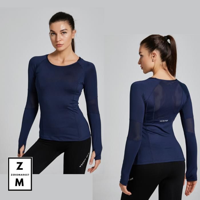 Baju Olahraga Wanita PREMIUM Baju DRI-FIT Running Gym Olahraga Lari Wanita Lengan Panjang - Biru S