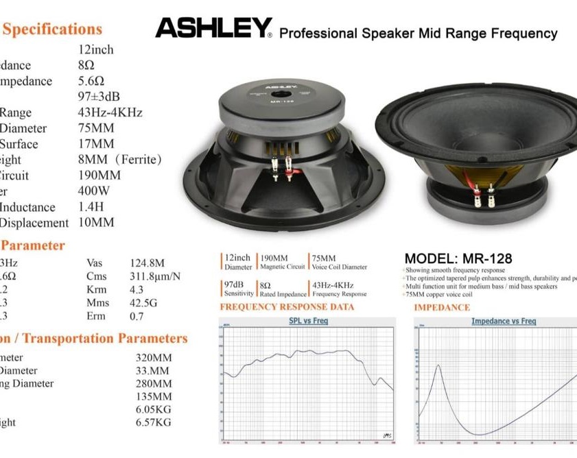 Komponen Speaker 12 Inch ASHLEY MR128 | MR 128 Khusus Line Array Original