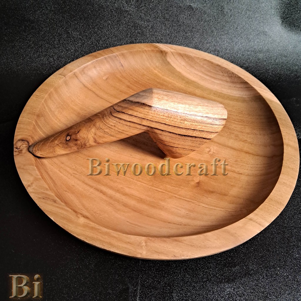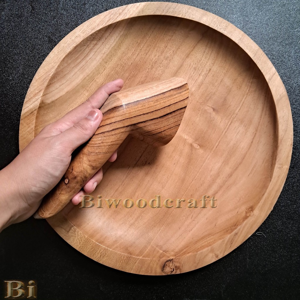 Biwood 1 Set Cobek Ulekan Kayu Jati 30cm