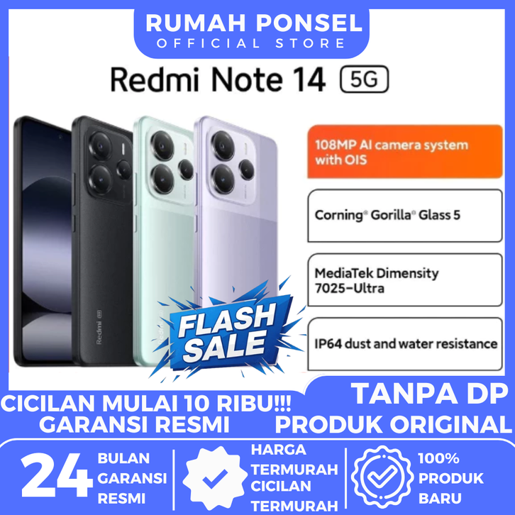 ( OFFICIAL STORE ) Xiaomi Redmi Note 14 5G - 12/512GB 8/256GB - 24GB Extended RAM - Rumah Ponsel Jakarta