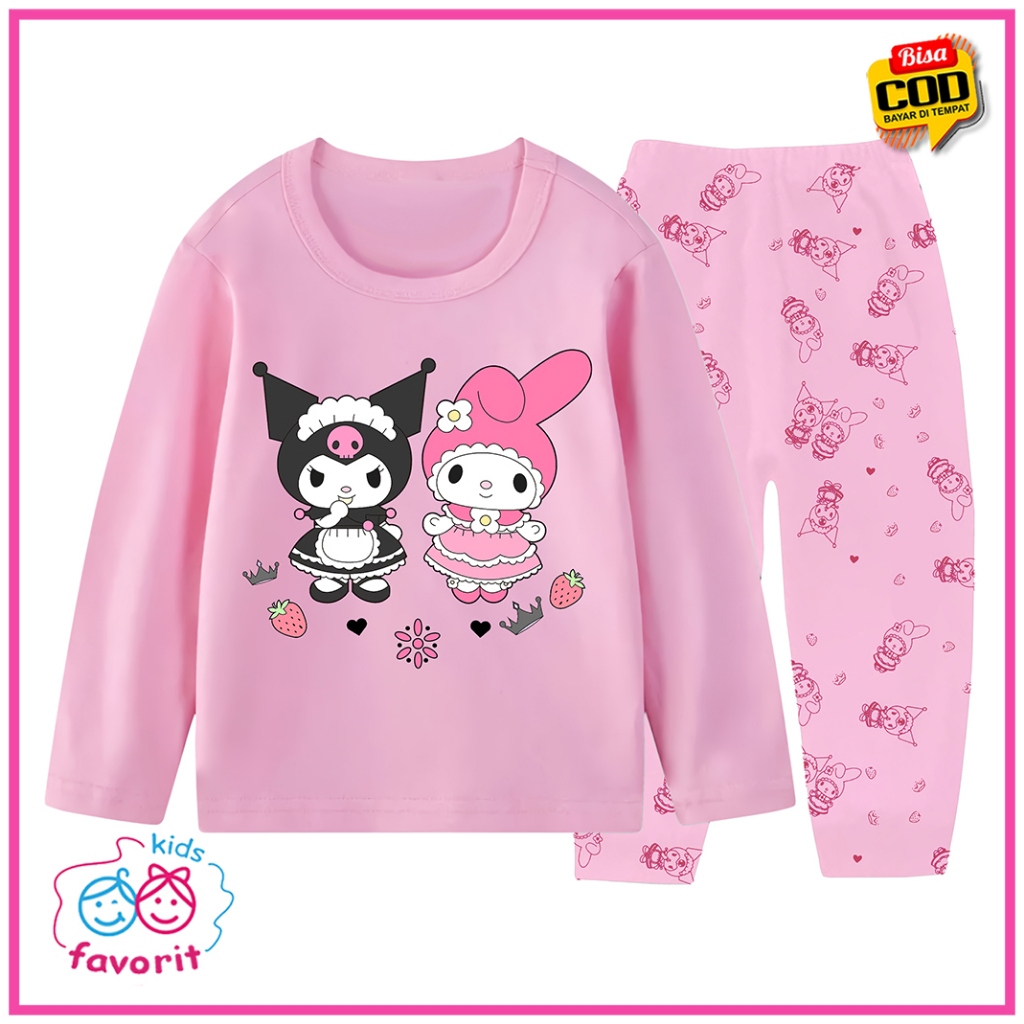 Piyama Setelan Baju Tidur Anak Perempuan Kuromi Melody Lengan Panjang Celana Panjang