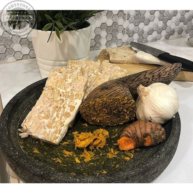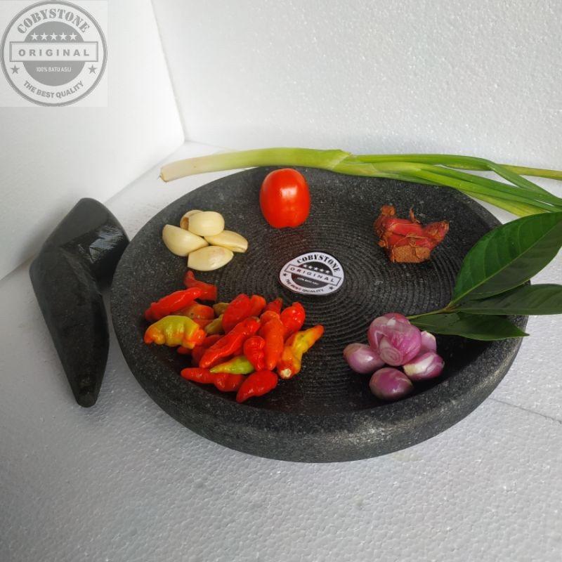Cobek Batu Asli 24cm Andesit Hitam Free Ulekan