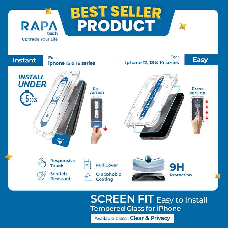 Tempered Glass Iphone RAPA tech Premium Tempered Glass for iPhone 16/ 15/ 14/ 13/ 12/ 11/ XR/ 16+/15+/ 16 Pro/ 15 Pro /