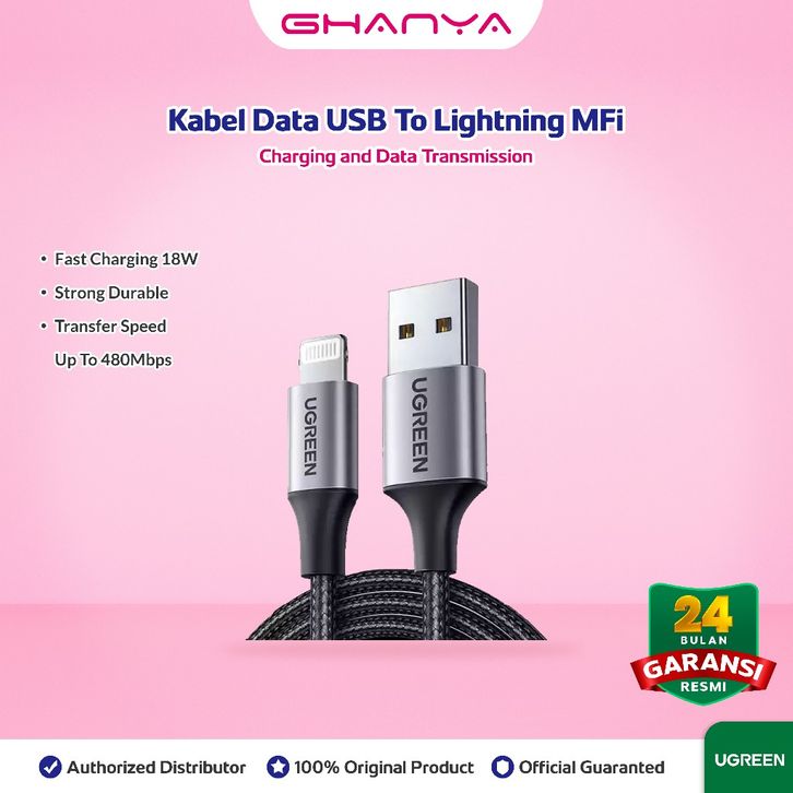 Kabel Data Iphone UGREEN Kabel Data iPhone USB to Lightning MFi Fast Charging 1 Meter 18 Watt 2.4 A Support Power Deliv