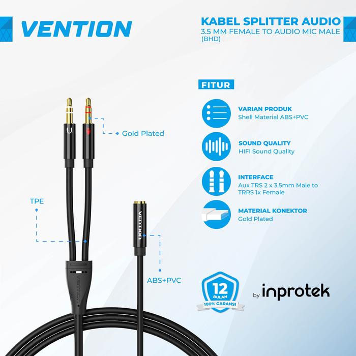Vention Kabel Aux Audio & Mic Splitter 3.5mm 1 Female to 2 Male